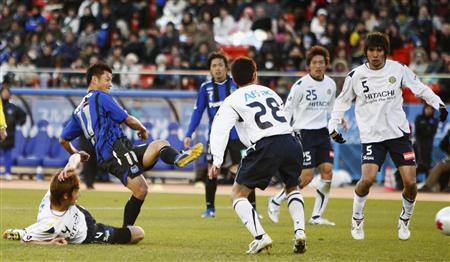 交替で入ったばかりのガンバFW播戸竜二が決勝点を蹴り込んで、1-0で